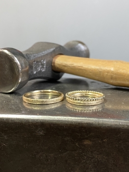 Schmale Trauringe aus 585er Gelbgold mit einem Kügelchenring